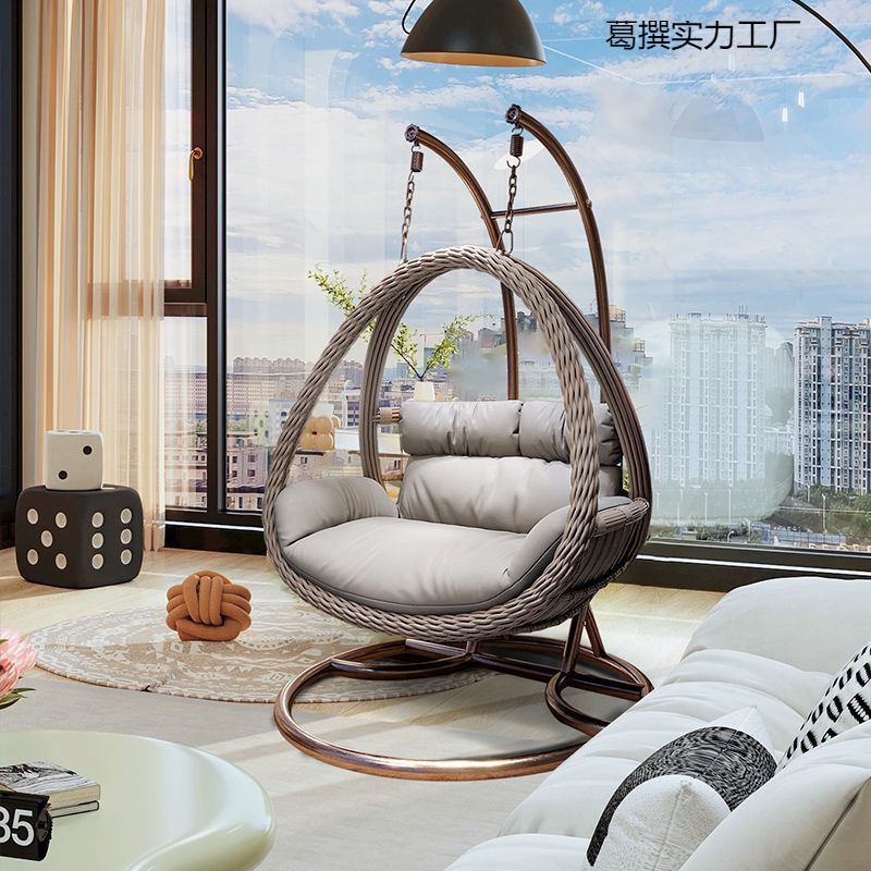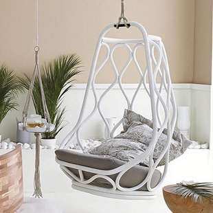 Мебель, современная качалка в помещении, подушка, подвесная корзина, увеличенная толщина