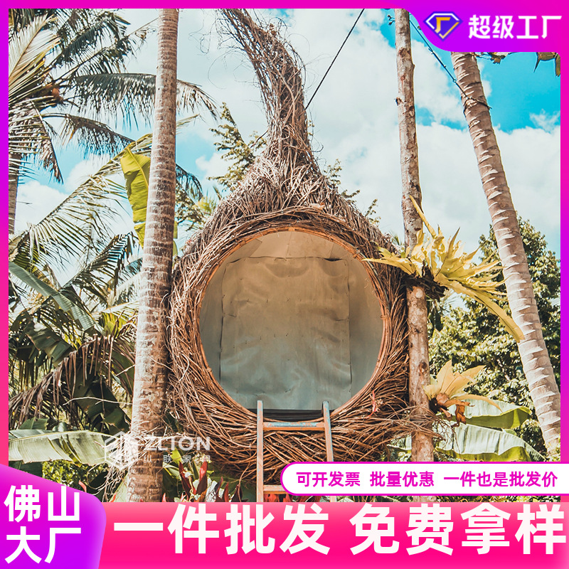 Зареала на знаменитость в Интернете и сфотографировать ротангановые качели на гнездо Love Bird's Mervice Seats Seats на B & B Scenic Spot Rewor и позиции для подвесных стульев