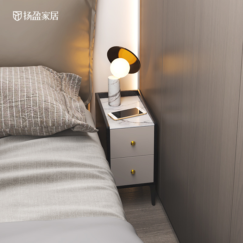 Зеленая стиль каменная панель прикроватная шкаф простая современная легкая роскошная сеть красная маленькая спальня кровати супер узкое мини -шкаф для хранения