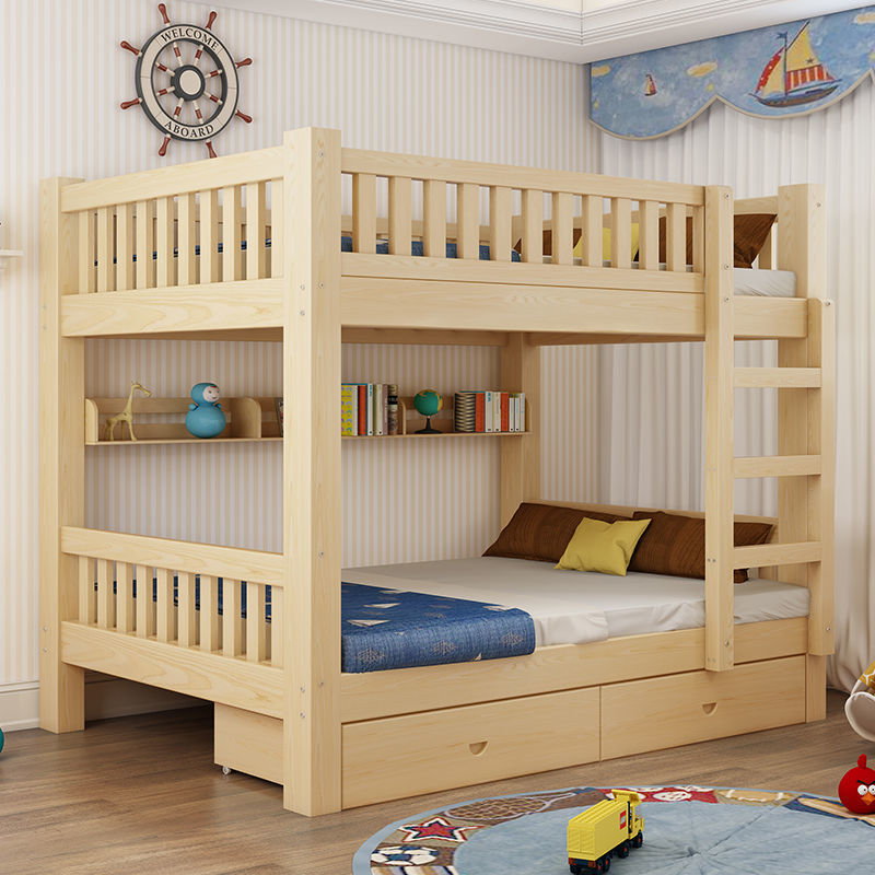 Полная древесина, чтобы лечь спать двуспальная кровать, высокая и низкая кровать, взрослые, небольшие блоки, небольшие квартиры, верхние и нижние кровати, двухэтажная национальная стандартная детская кровать