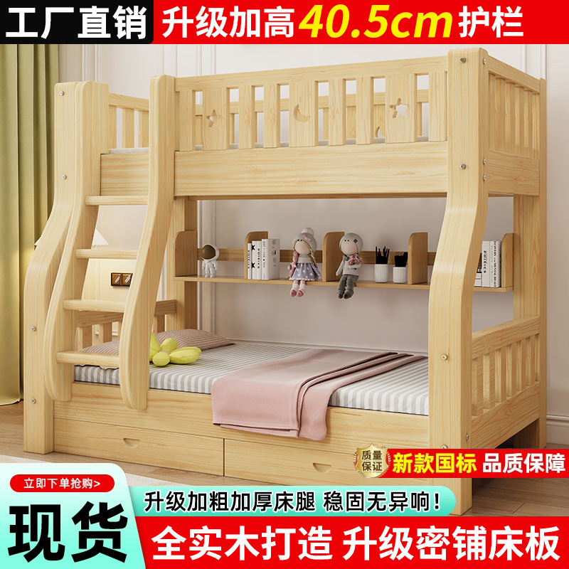 Полная древесина, чтобы встать на кровать экономический тип суб -двойной детской кровати высокой и низкой кровати на верхней и нижней кроватях на втором этаже деревянного кровати толсто и толстых