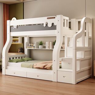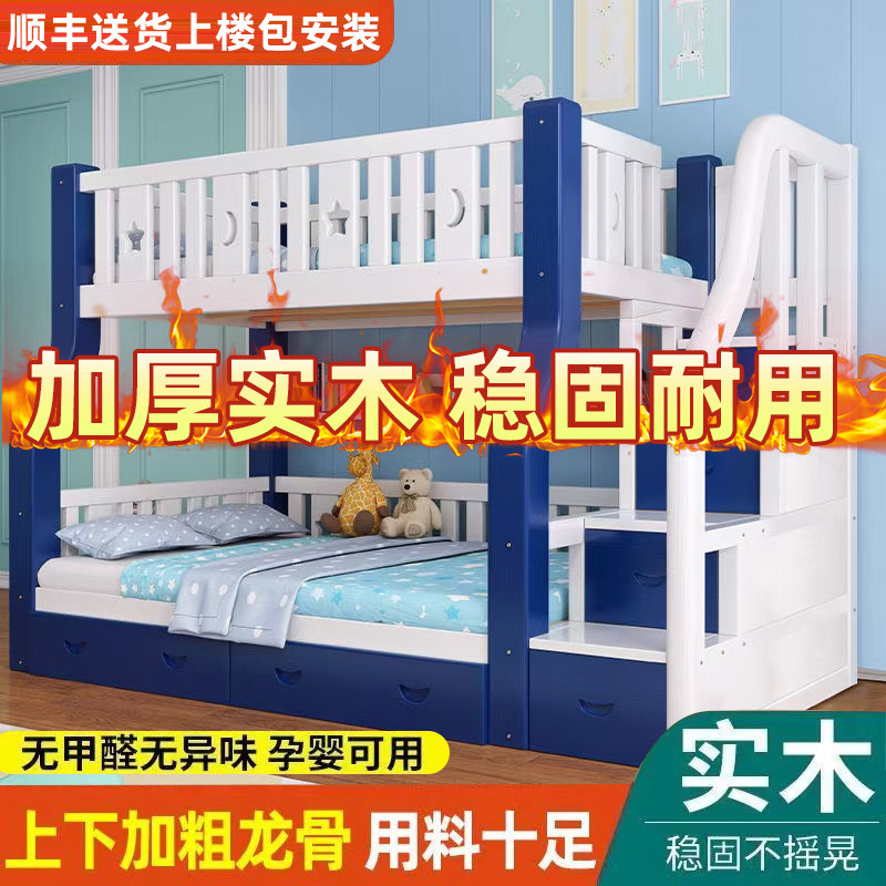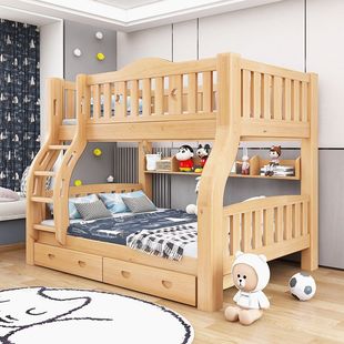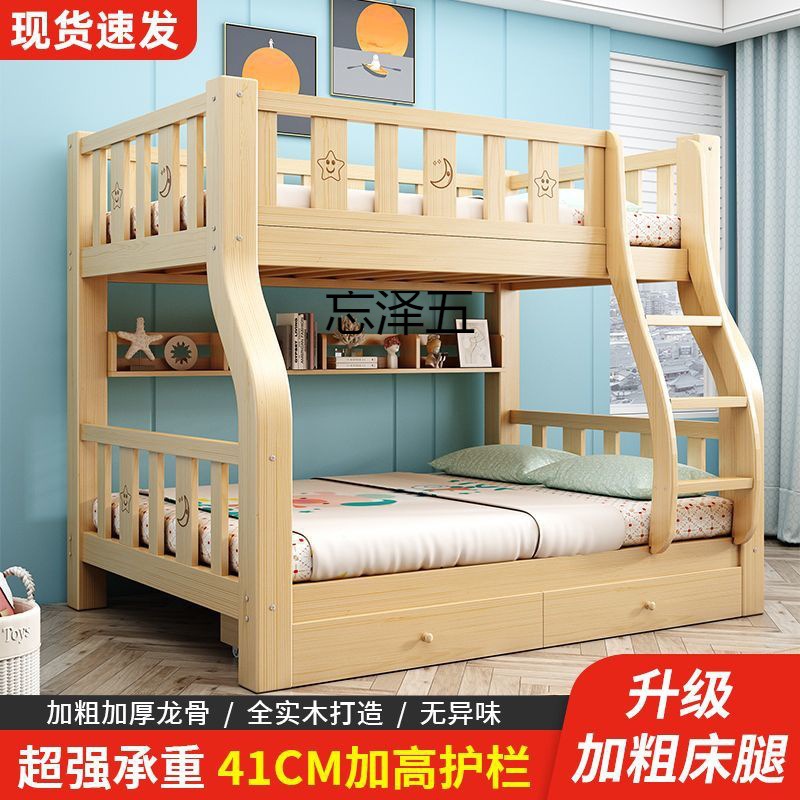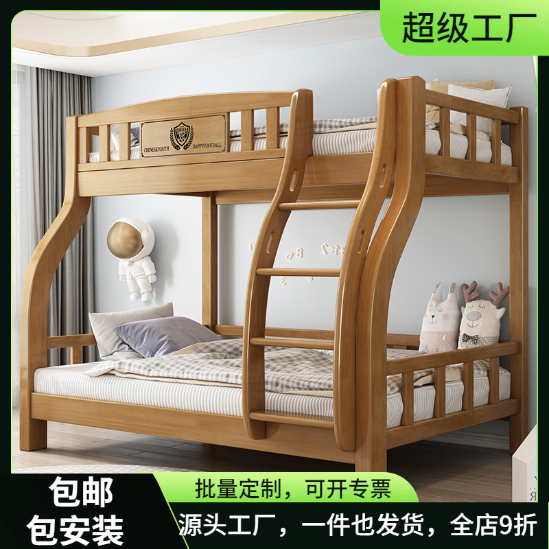 Двухъярусная кровать из массива дерева, двухъярусная двухъярусная кровать, комбинация детской кровати для небольшой квартиры, высокая и низкая кровать, утолщенная двухъярусная кровать