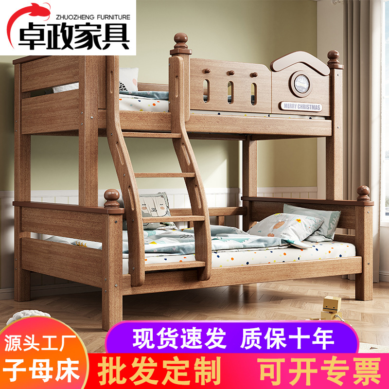 Сплошное дерево мать -кровать для взрослого детского кровати и нижняя тротуар Двухворная кровать резиновая деревянная кровать подвесная лестница и нижняя двуспальная кровати