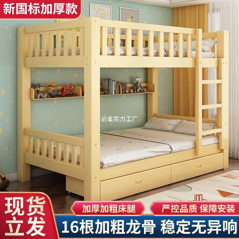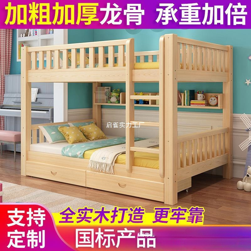 Национальный стандарт All -Solid дерево, двойная кровать, детская древесная кровать для взрослых маленькая квартира, два этажа, верхние и нижние слои высокого и низкого уровня детской кровати