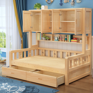 Простая кровать, высокая и низкая, маленькая квартирная кровать, приподнятый детский шкаф, нижняя кровать из цельного дерева, столик, простыня, маленькая квартира, полная верхняя часть