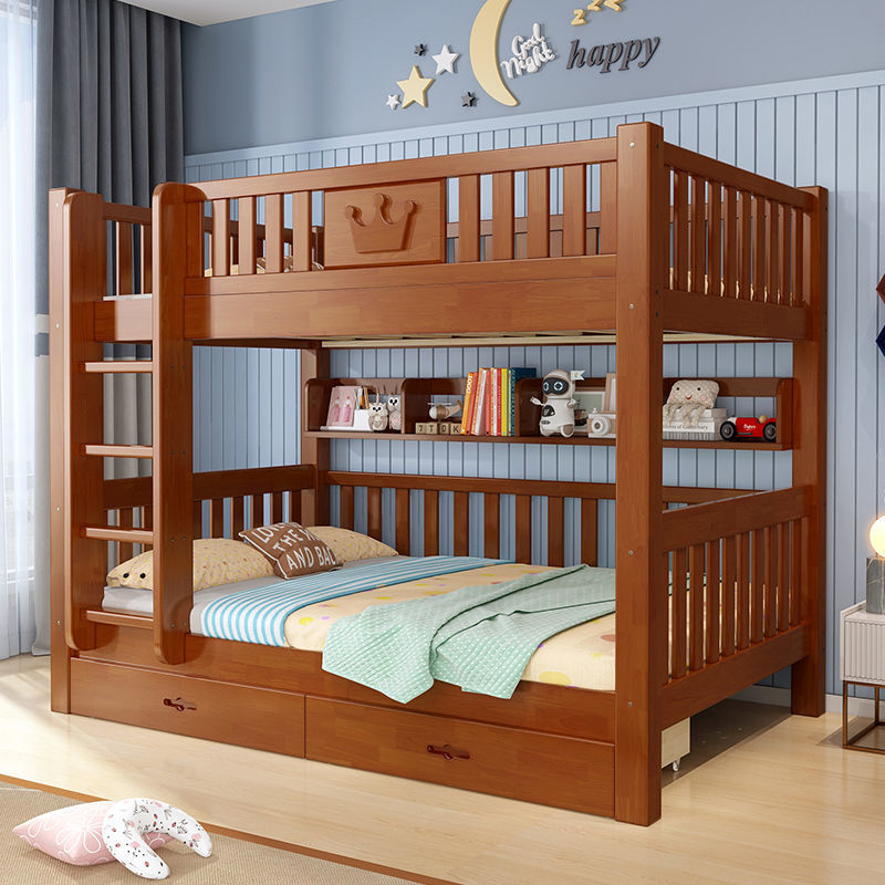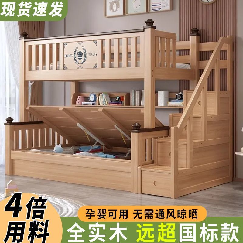 Национальный стандарт All -Solid дерево, двойная кровать, детская древесная кровать для взрослых маленькая квартира, два этажа, верхние и нижние слои высокого и низкого уровня детской кровати