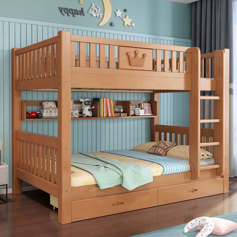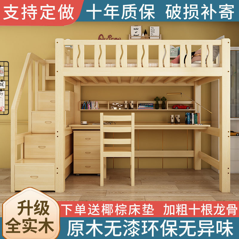 Детские верхние и нижние двухъярусные кровати для домашнего использования, общежитие второго этажа, высокие и низкие кровати, все дерево, небольшая квартира, студенческая мать и детская кровать