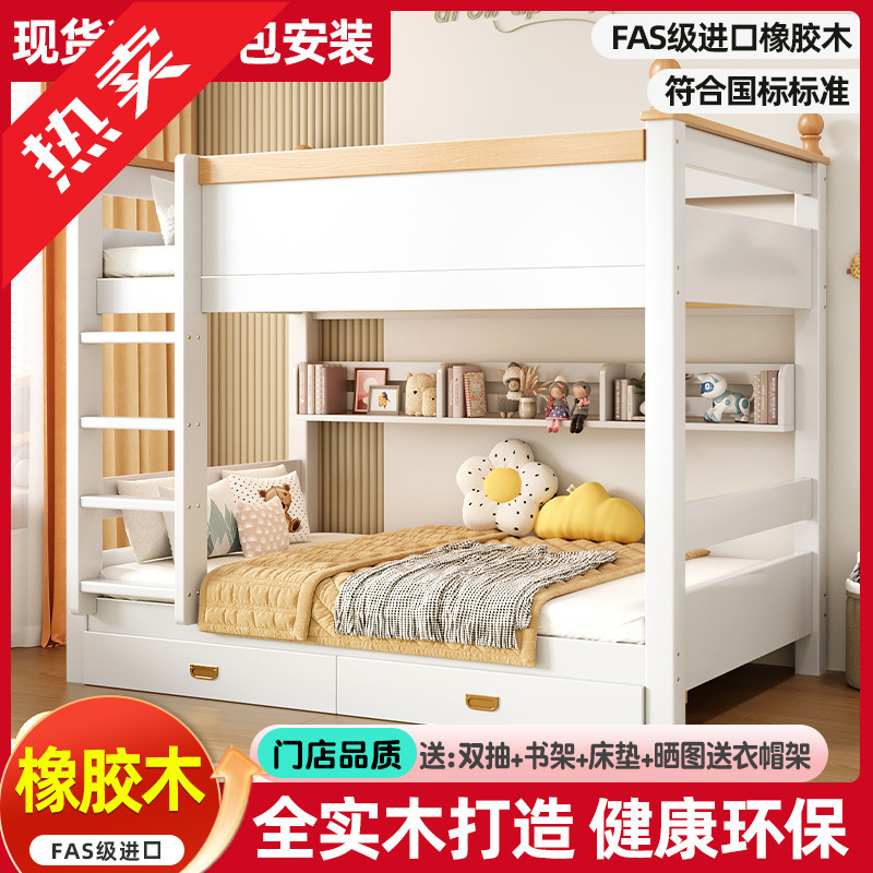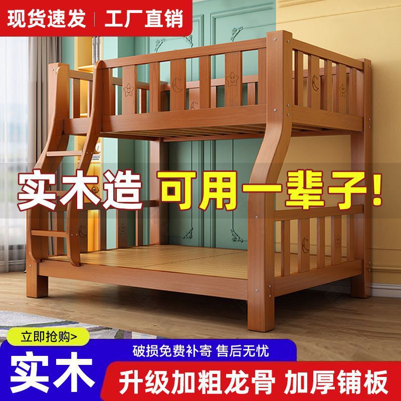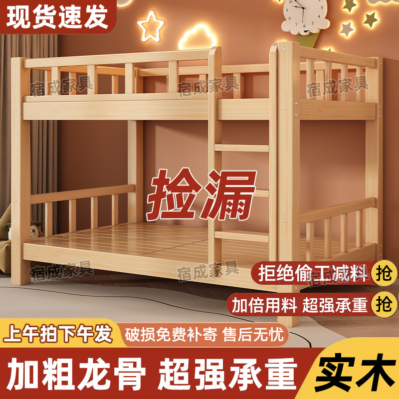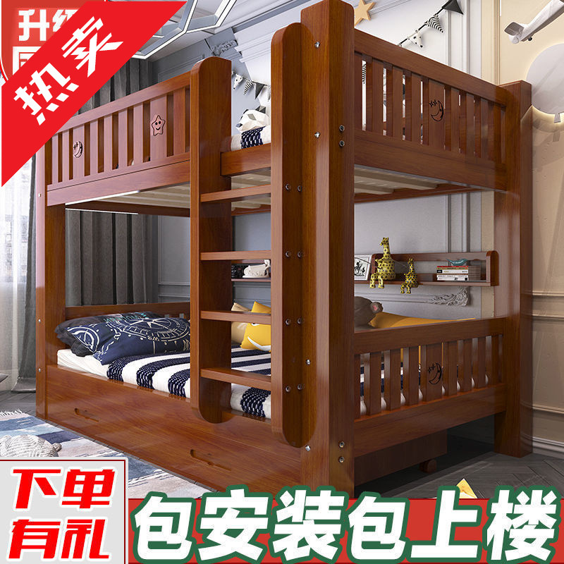 Детская кровать, двухъярусная кровать, твердое дерево, утолщенное домохозяйственное мать-кровать, для взрослой двойной кровать общежитие