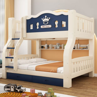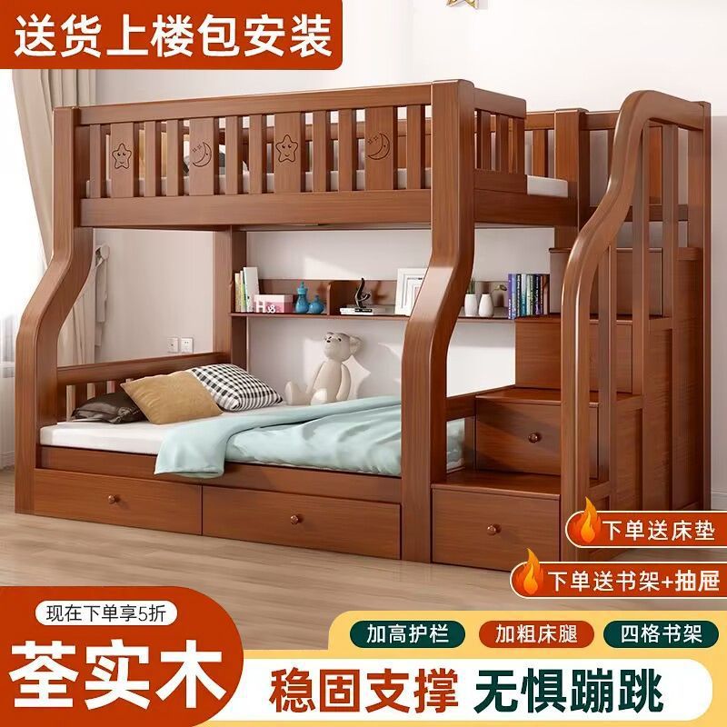 Пройдите лечь в кровать, полная кровать -заполненная древесина высокая и низкая кровать взрослые многофункциональные маленькие квартиры дети вверх и вниз по деревянной кровати детской кровать