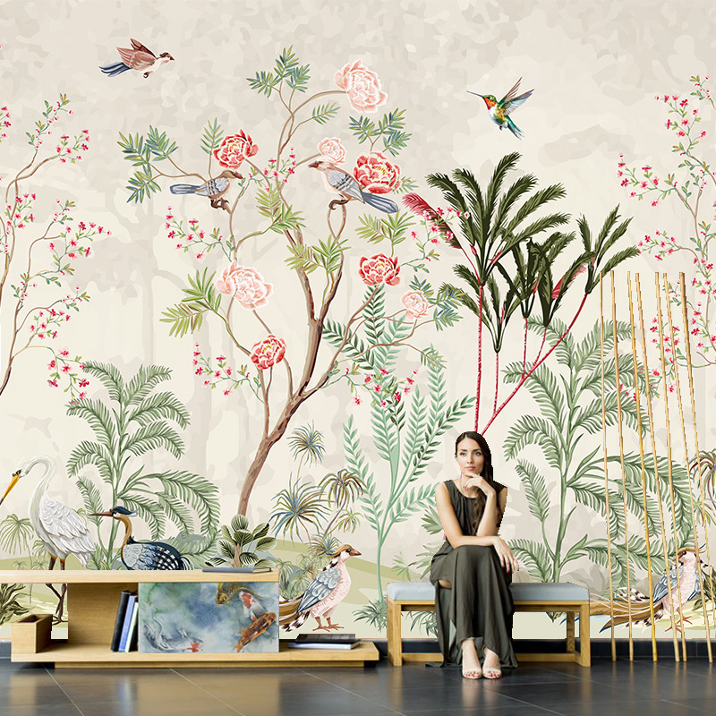 Ретро лампа для растений, обои для кровати, в американском стиле, ручная роспись, в цветочек, французский стиль