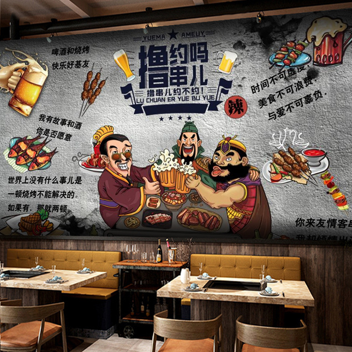 5D Трехмерные три королевства, натягивающие фоновые обои, шашлыки ароматные обои для барбекю на гриле жареные шашлыки горячий горшок ресторан ресторан барбекю роспись