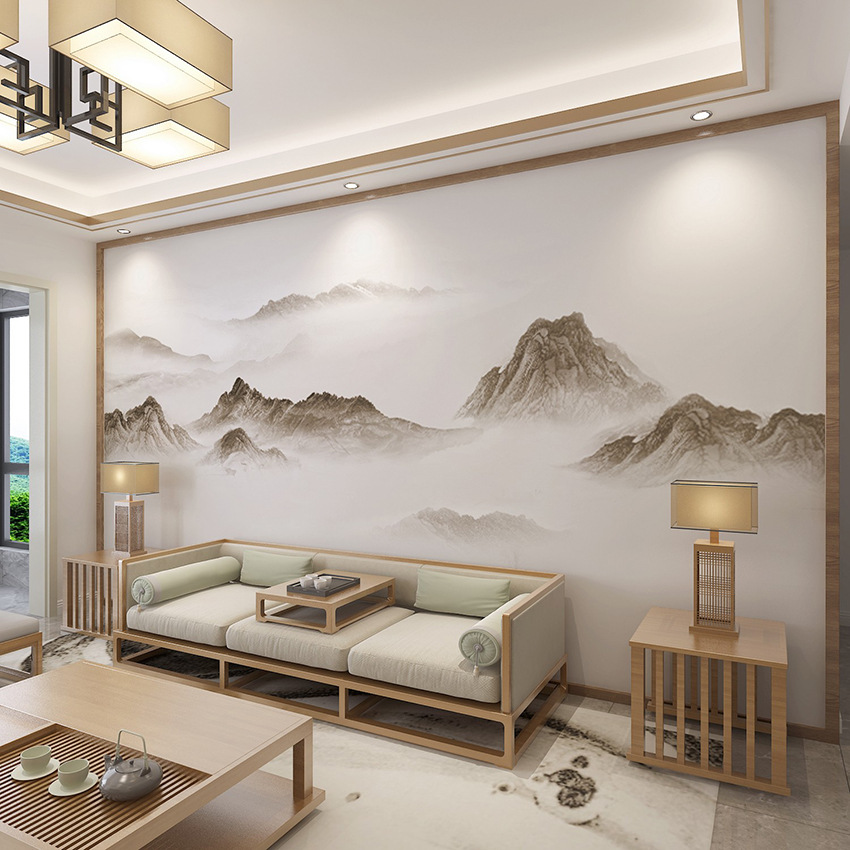 Новые китайские обои от руки ландшафтный ландшафтный телевизионный фоновый фоновый диван на стенах классический роспись гостиная спальня спальня бесшовная настенная ткань