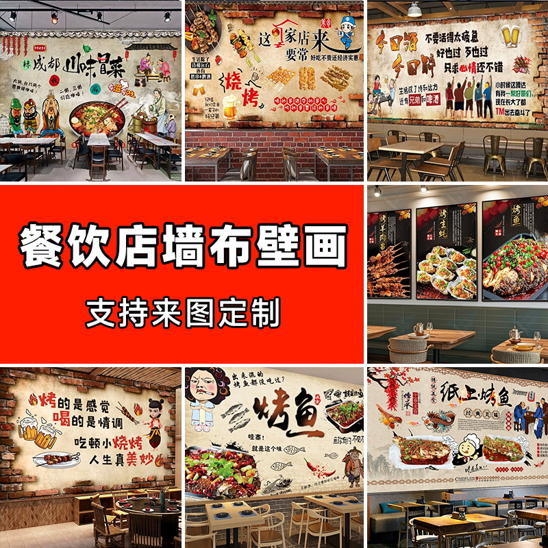 Шаг для барбекю на стенах ткани, ресторан ресторан, стена, ткань, ночью, магазин барбекю, фон, настенный ресторан, украшение