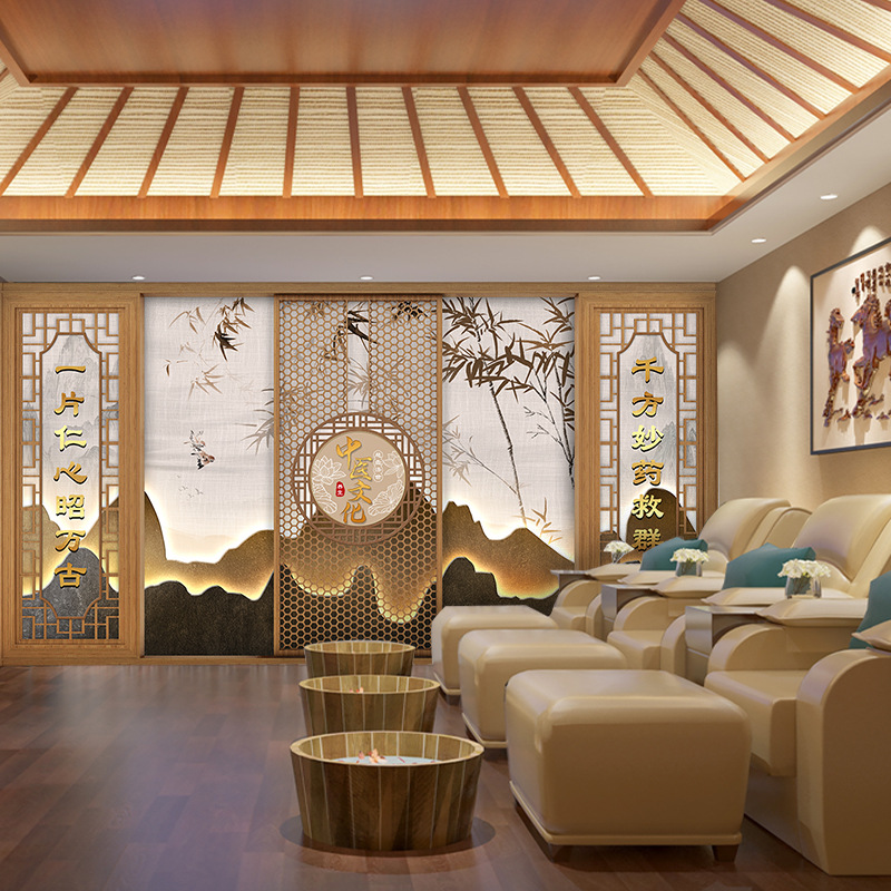 Новый китайский салон красоты настенный ткань Здоровья Зал Клуб Обои традиционная китайская медицина культурная массаж Массаж