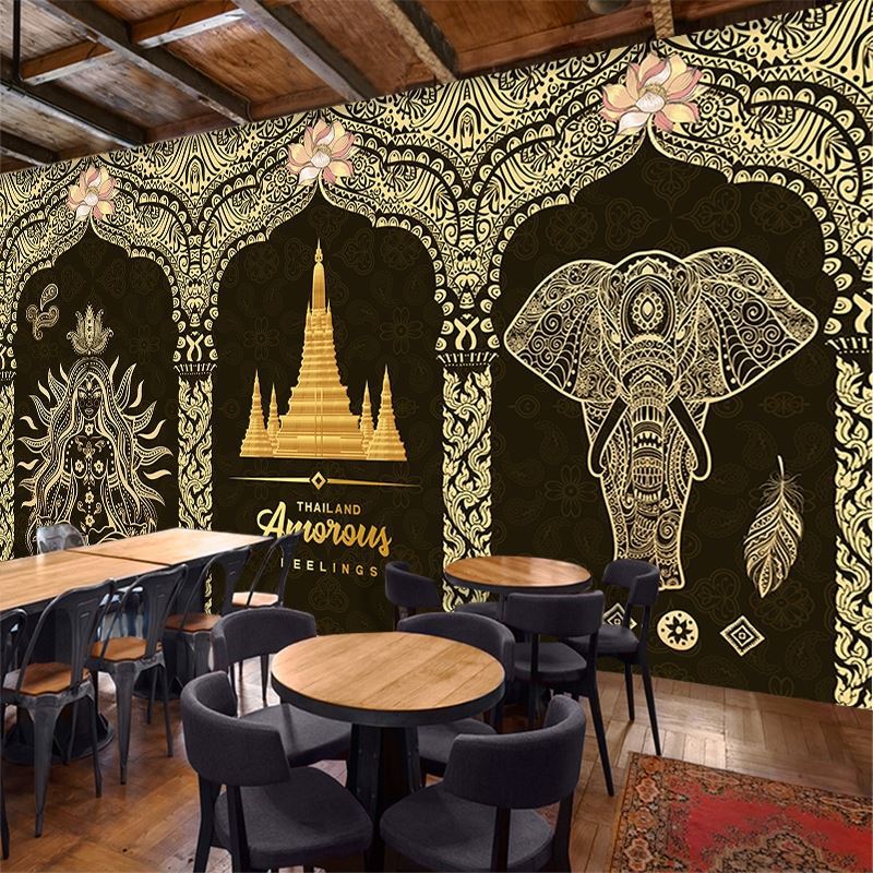 Тайская юго -восточная азиатская украшение обои на салоне Thai Style Слон роспись йога спа -центр здоровья столовые обои ресторан
