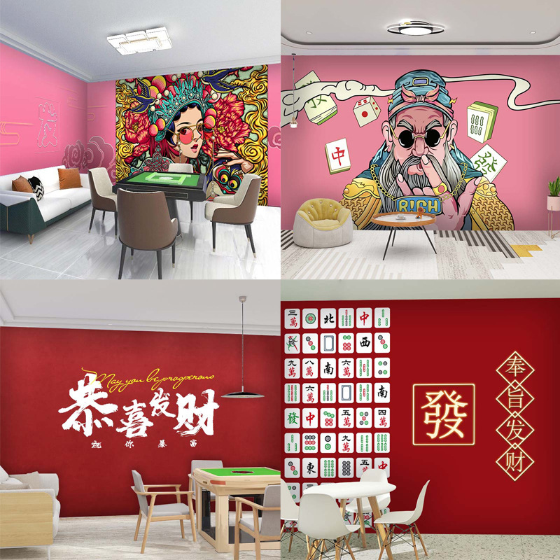 Маджонг Холл Фон Стена Ткань национальная тенденция интернет -знаменитость ретро -обои шахматы и карточные комнаты