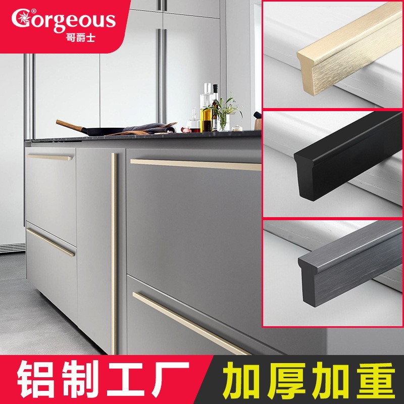 Современный простой простой шкаф дверной рука -Имитация золота современный черный алюминиевый шкаф шкаф шкаф шкаф с длинной дверной ручкой