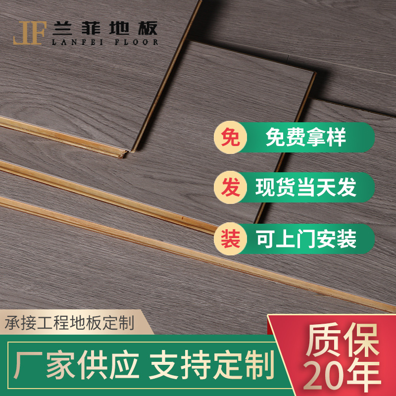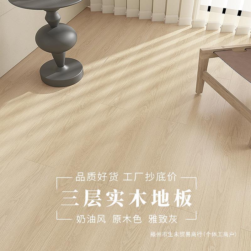 Деревянный этаж домохозяйства Новое три -сплошное дерево 15 -миллиметровое сливочное ветры Оригинальный деревянный серый многослойный композитный водонепроницаемый нагрев пола