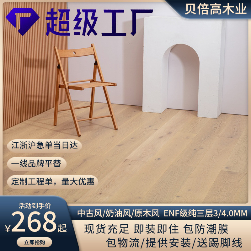 Фабрика прямой продажи бревна с деревом с деревом дуб чистый трехслойный сплошной древесина композитный пол E0 Уровень 3/4 мм деревянная кожа