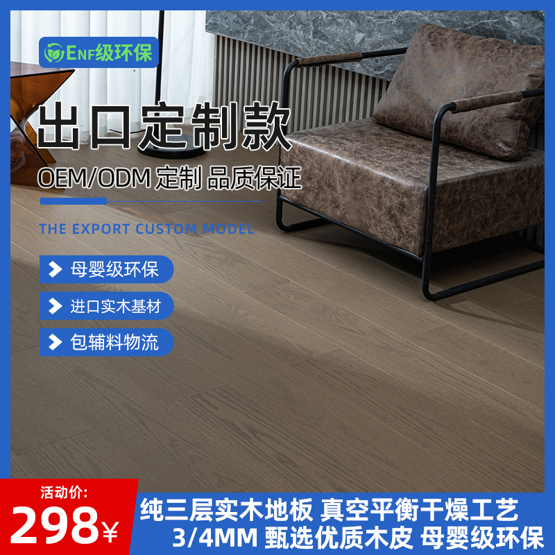 Вау, индивидуальный AB Grade Oak Pure Трехслойный деревянный ламинат на пол Nordic Style Enf Enf Экологически чистый 3-миллиметровый высококачественный деревянный кожа