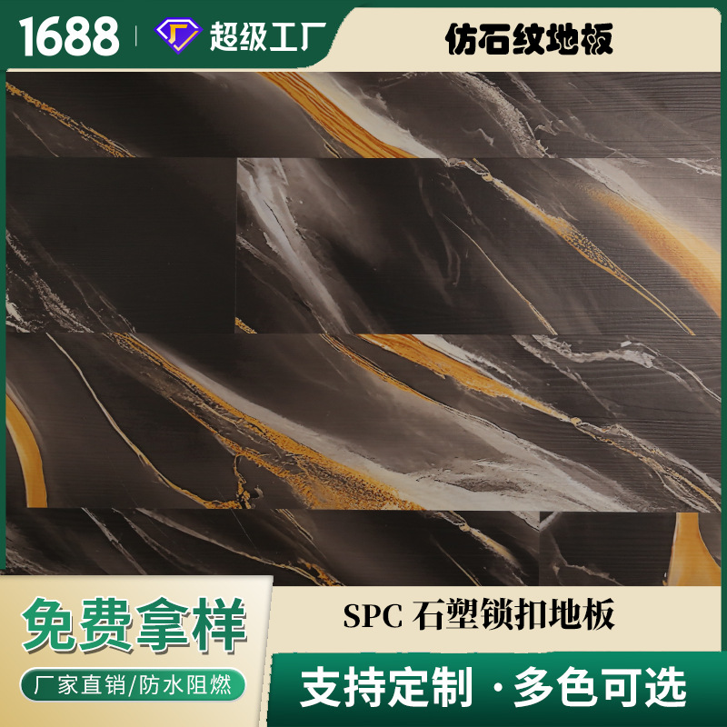 Коммерческий -Бесплатный формальдегид SPC Каменный пластиковый пол Золотой Золотой Эстетический Отель Рекомендуется ПВХ каменной хрустальный пол огня Легко чистить