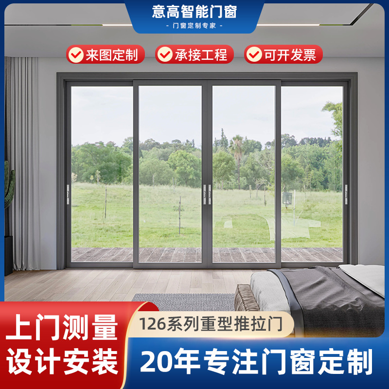 126 Сверхмощные раздвижные двери Сломан мост алюминиевый сплав Слива Дверь Кухня Звел