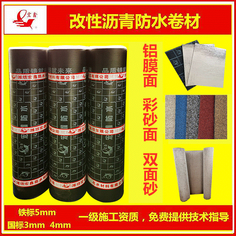宏鑫 Производитель прямой продажи запеченных пожарных SBS-модифицированных асфальтовых водонепроницаемых рулон 3 мм4 мм полимера 4,5 мм пластика
