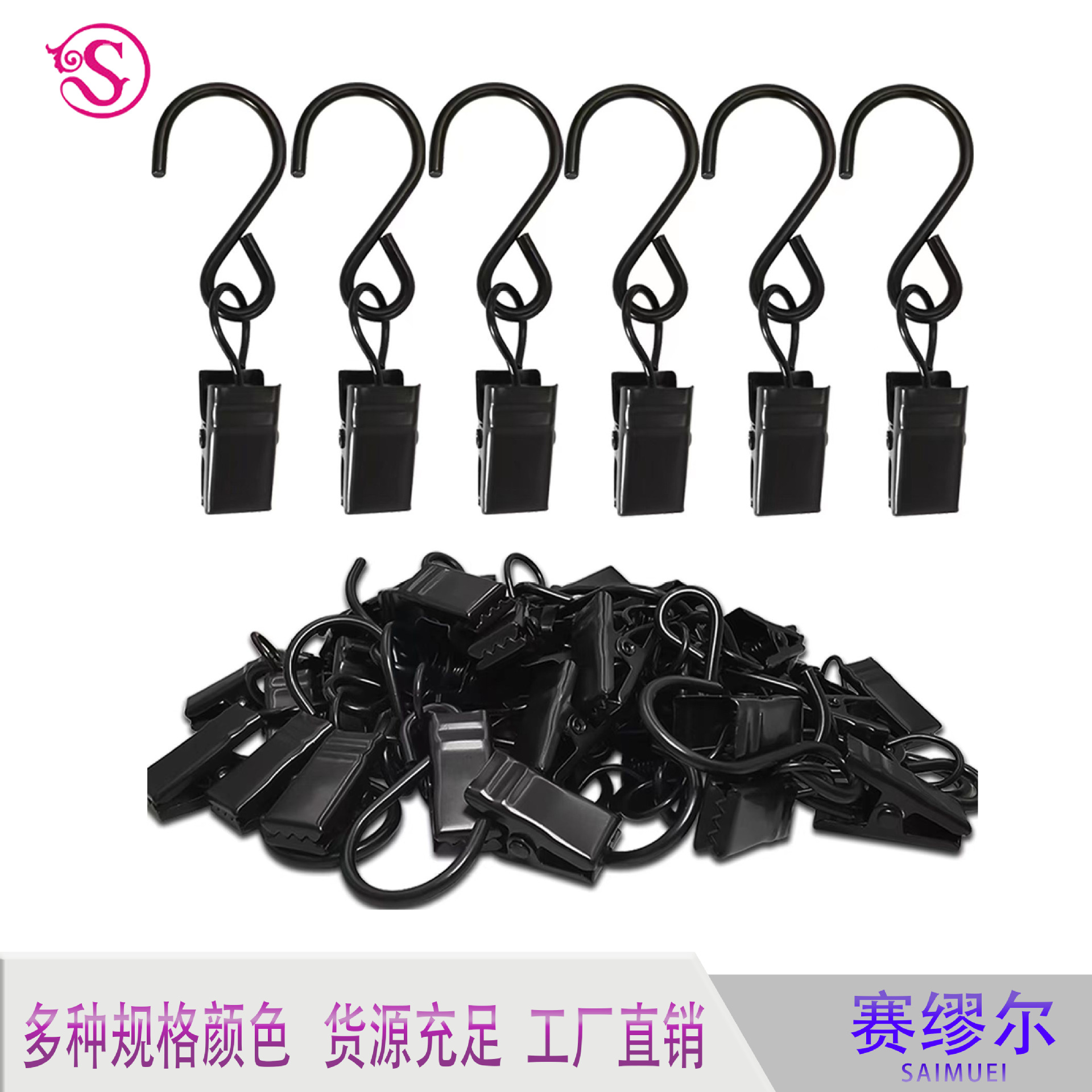 Cross -Workder Hot -Showing Black S Крюк Клип Клип для подвесной занавес