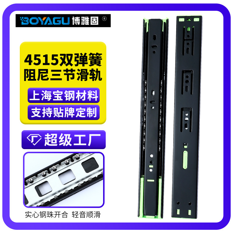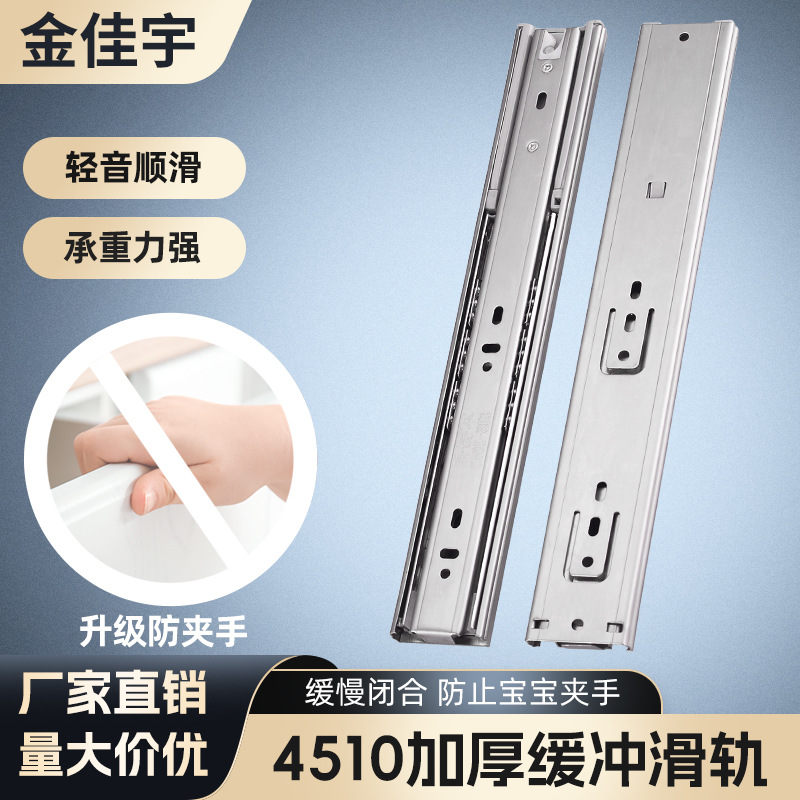 Производитель 4510 толщина 6-26-дюймовый ящик для тихого рельса Три складывания буферных буферов Слайд-дорожные рельсы