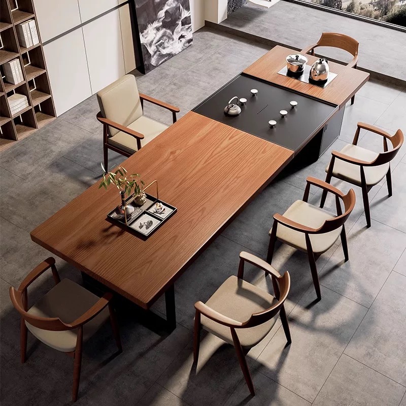 ┈Большой чайный столик из массива дерева для кабинета начальника для приема гостей, чайный столик, чайный столик с чайным подносом и чайником.