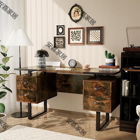 Большой настольный компьютерный стол с 4 ящиками, с пространством для хранения и металлическими u -образными ногами
