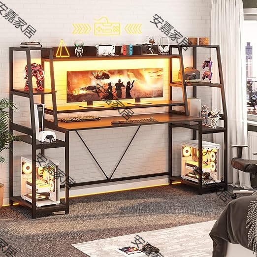 Игровой стол со светодиодными фонарями, шкафами и стойками для хранения, компьютерными столами с дисплеевыми кронштейнами,