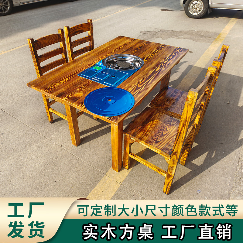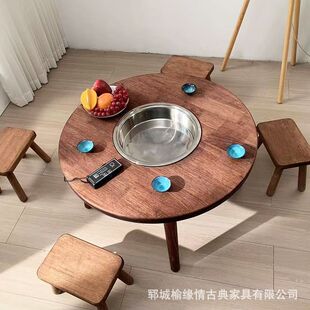 Рок -тарелка резиновая деревянная деревянная стола для горшка корейская легкая тема роскошная тема ресторана барбекю без дымоходного барбекю Очистка для барбекю горячий горшок и стул Комбинация