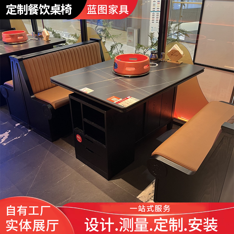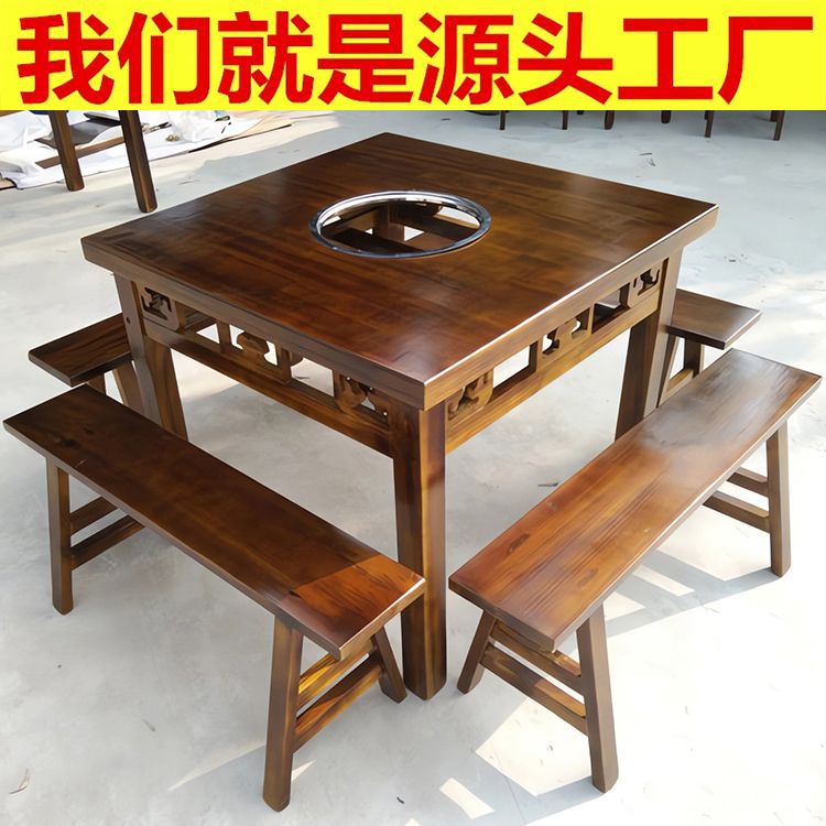 Стол с твердым древесиной горячее горшок Индукционная плита, квадратный стол горячий горшок ресторан ресторан, стойл, скамейка, поддержка земельного стола
