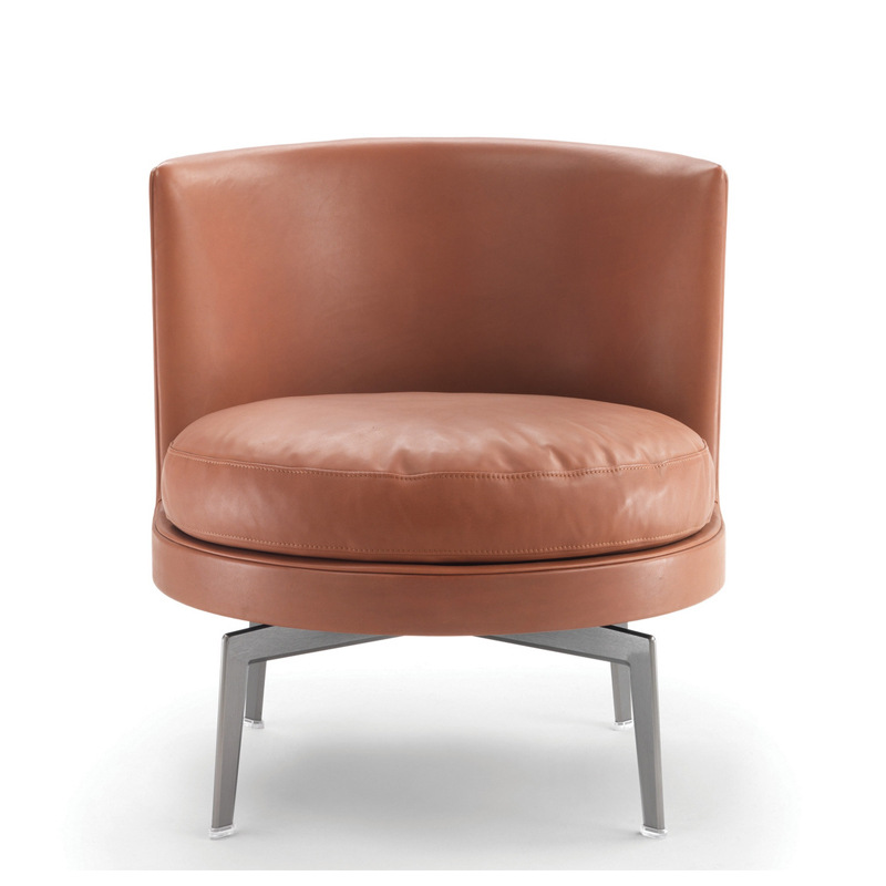 Итальянский минималистский кожаный одиночный диван Гостиная может повернуть повседневные кафе -дизайнерские кафе, чтобы договориться о стуле