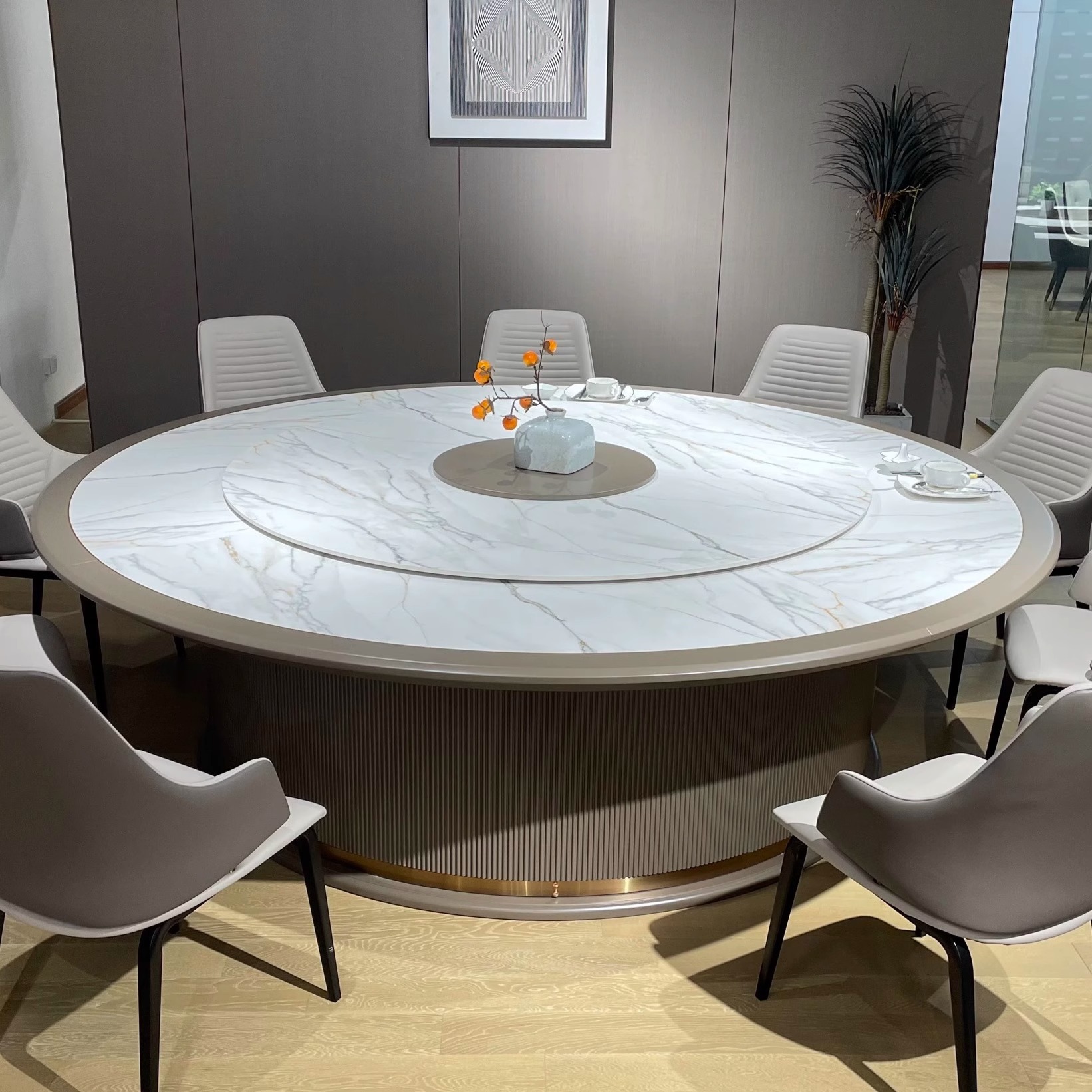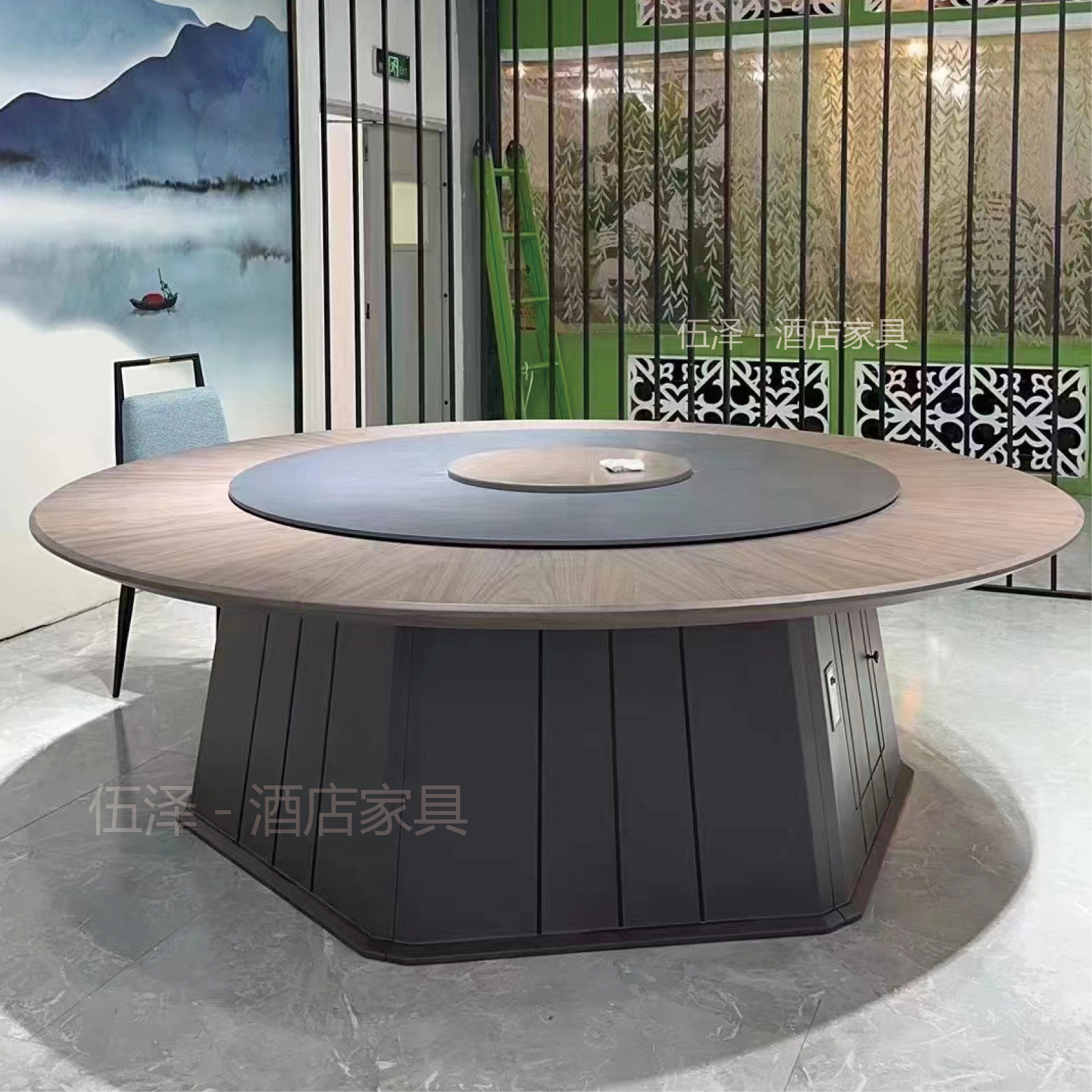 Новый китайский отель Electric Table Большой круглый стол 20 -любимый каменная тарелка с твердым деревом Параллельные лифты и мебель для стола с поворотным столом
