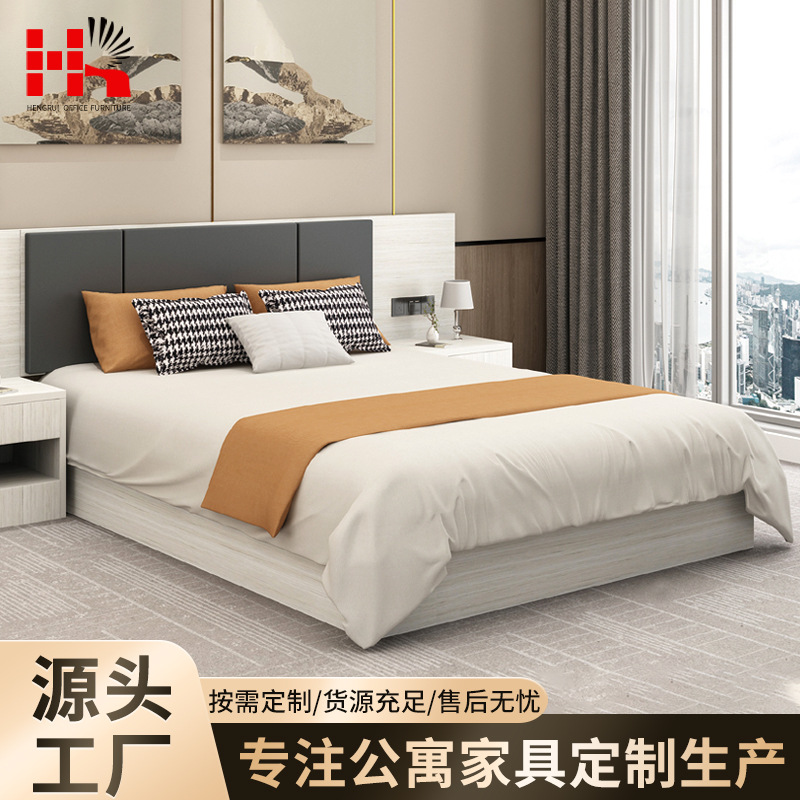 Отель и отель мебель Полный комплект/кровати для досок, твердая двойная двуспальная кровать, простая современная домашняя квартира мебель