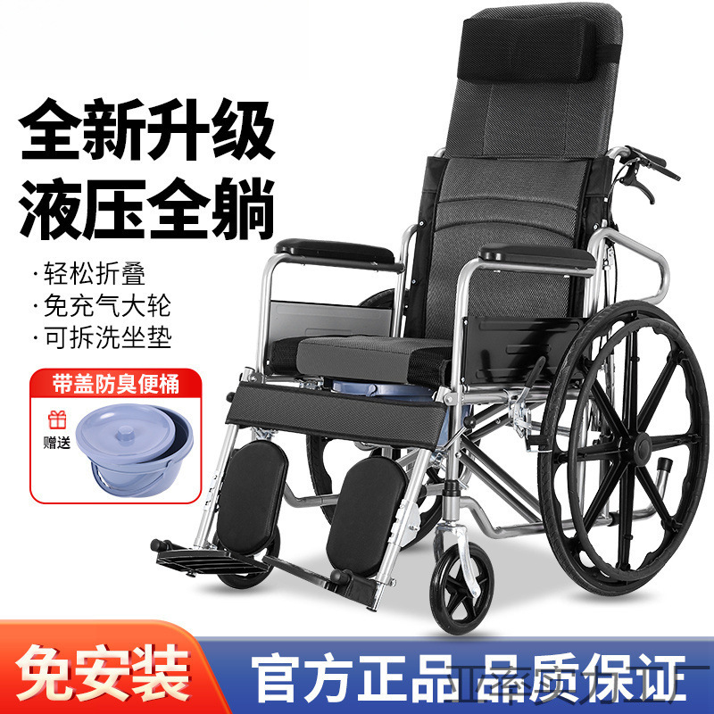 Полностью лживая складная инвалидная коляска с легкими портативными пожилыми людьми с ограниченными возможностями может двигаться с ограниченными возможностями.