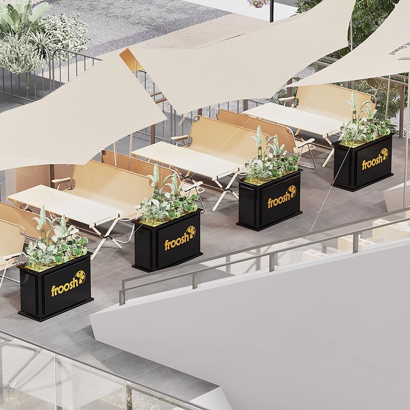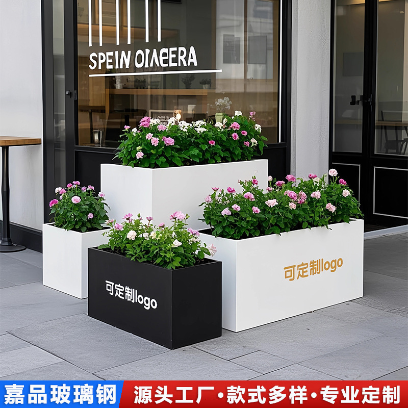 Открытая цветочная коробка на открытом воздухе. Внешний квадратный квадрат коммерческий уличный молочный чай магазин перегородка ландшафт прямоугольный цветочный горшок цветочный кровать цветочный котла