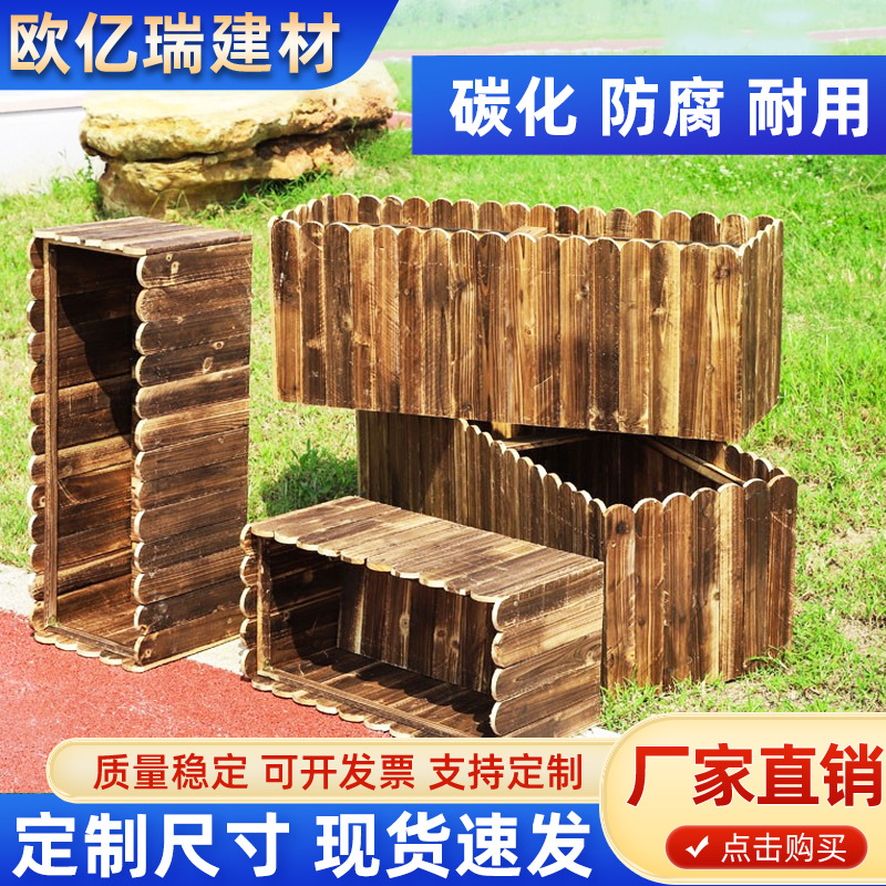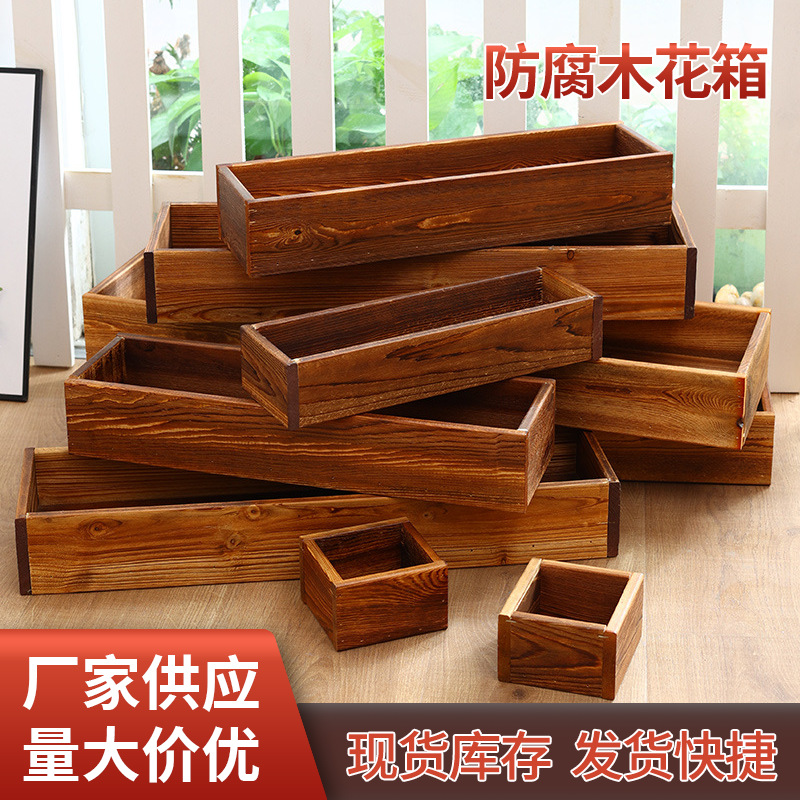 Цветочная коробка Антикоррозивная карбонизированная деревянная длинная квадратная цветочный балкон на открытом воздухе цветочный пруд деревянный цветочный ящик с открытым потолком большой посадка