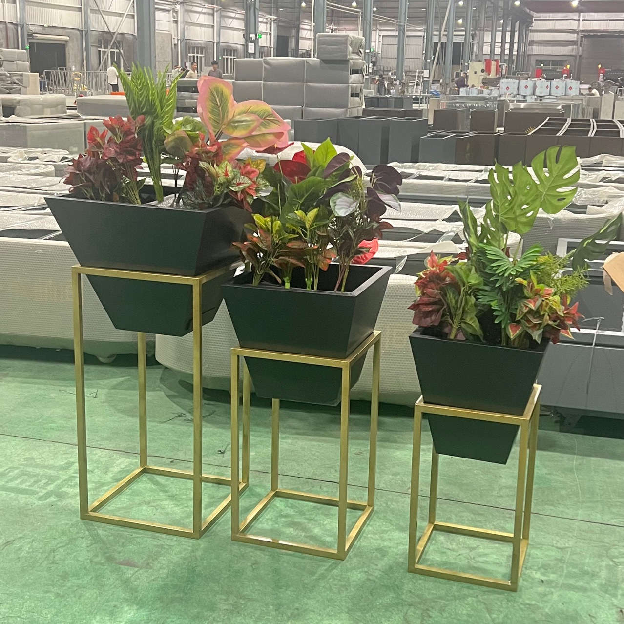 На открытом воздухе железо длинная квадратная цветочная коробка Комбинирование ресторана цветочная перегородка цветочная стенда из нержавеющей стали квадратная платформа для цветочного горшка
