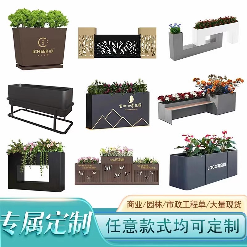 Открытая сталь из нержавеющей стали открытая цветочная коробка Комбинированная цветочная танка коммерческая уличная цветочная кровать отдел продаж цветочной миску за пределами рекламы свето ящик цветочный подставка