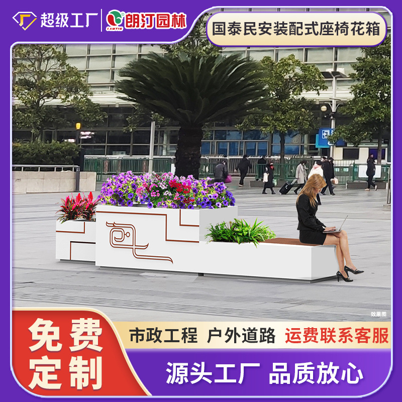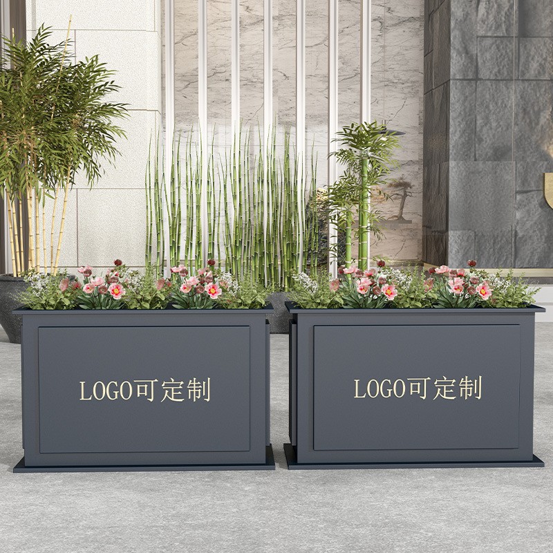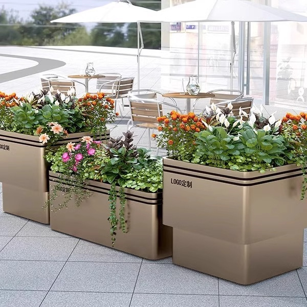江南名家 Прямая эксплуатационная открытая нержавеющая сталь офис продажи цветочной коробки Коммерческий квадратный железо цветочный горшок для цветочной коробки