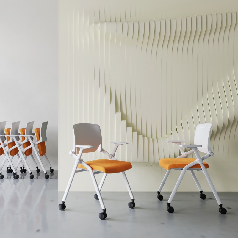 Фабрика оптовая и модная апельсина -воздухопроницаемое с письменным подготовкой для тренировочных складных стул со складным креслом для писательской сорты быстрого кресла
