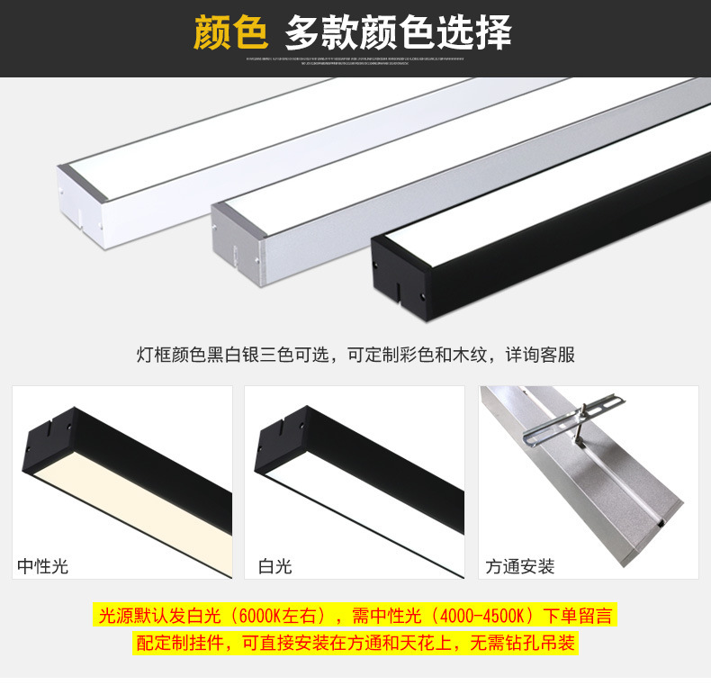 Светодиодный длинный квадратный квадратный потолок U -образный алюминиевый торговый торговый центр -торговый центр интернет -кафе