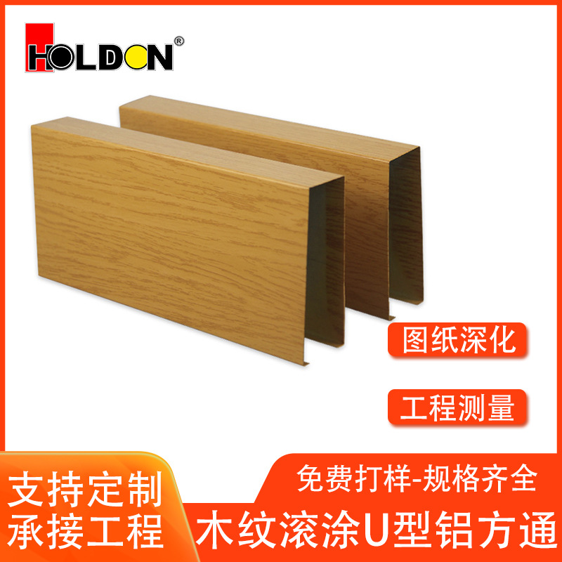 Современный минималистский деревянный зерно u -образный алюминиевый квадратный квадратный квадратный квадратный квадрат -потолок с алюминиевой решеткой.