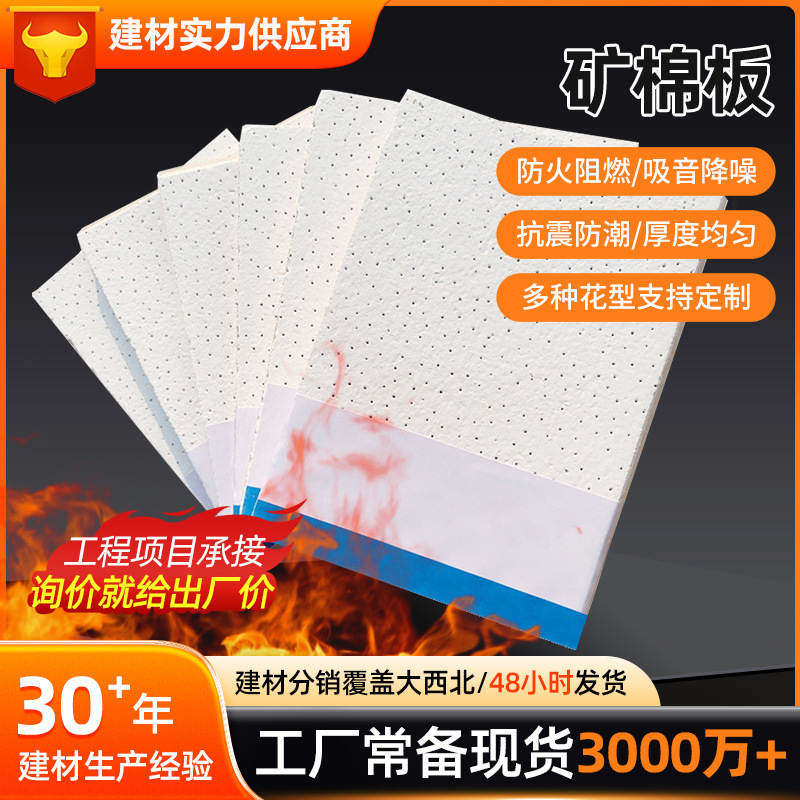 Производитель кальциевый силикатный плата Потолочный огонь и влажность 600*600 Потолочный материал потолок Большая точка минеральная шерстяная плата