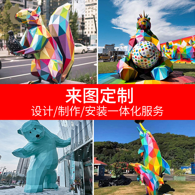 Мультфильм FRP фигура животных геометрическая скульптура Аннотация инопланетная панда Большая садовая сталь из нержавеющей стали украшения