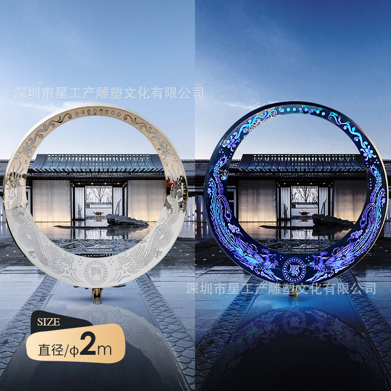 Большая скульптура из нержавеющей стали металлическое зеркаловое полое кольцо.
