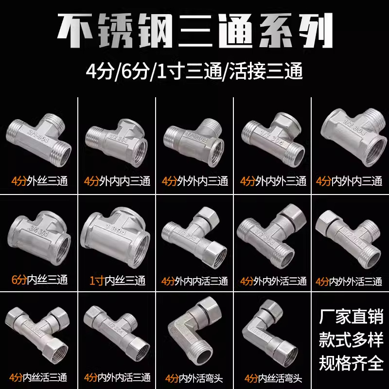 Толстый 304 из нержавеющей стали три соединенных соединения 4 точки, три наружных провода, три внутренних шелка, один внутри, два и за пределами трех аксессуаров для водопроводов.
